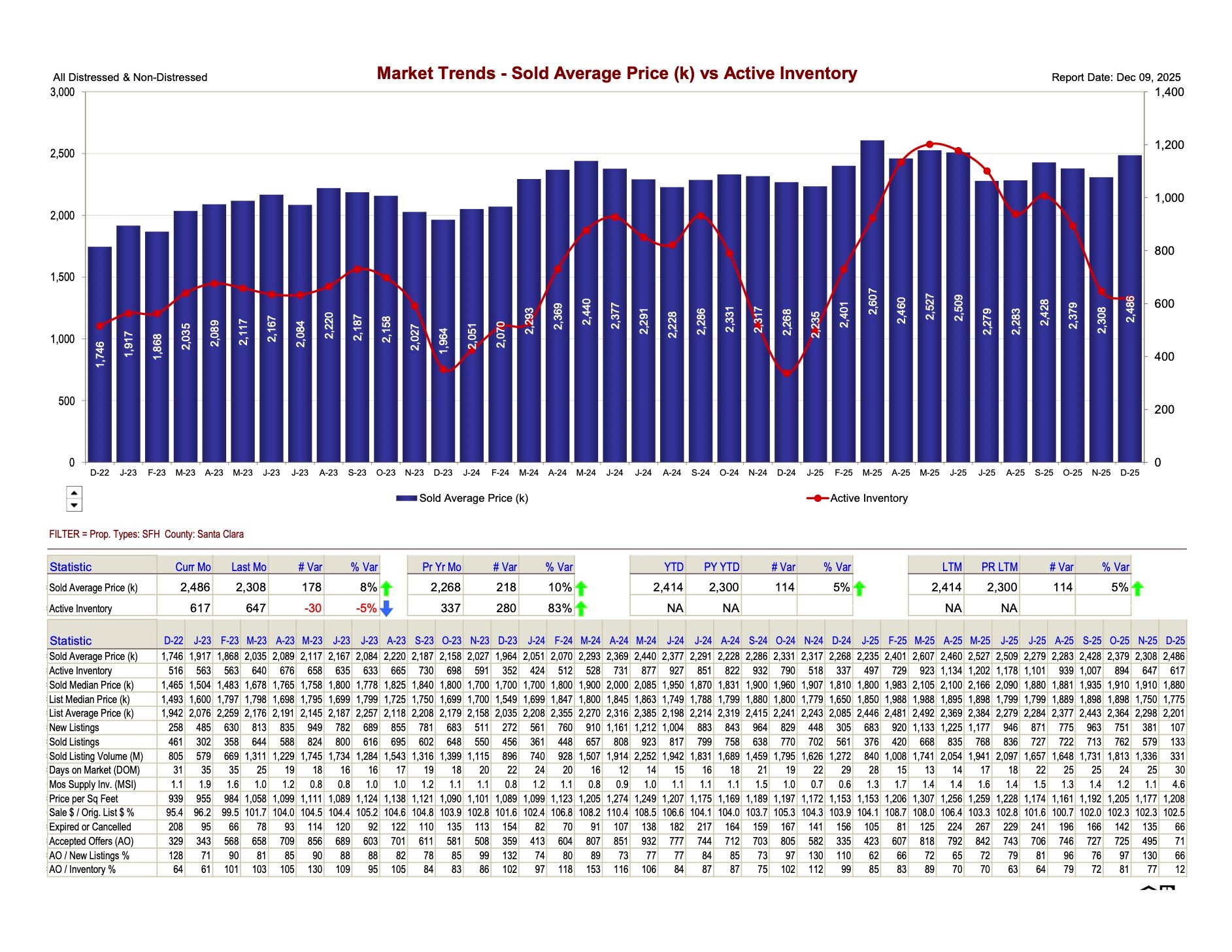 (Source: Santa Clara County MLS Market Trends, Dec 9, 2025)