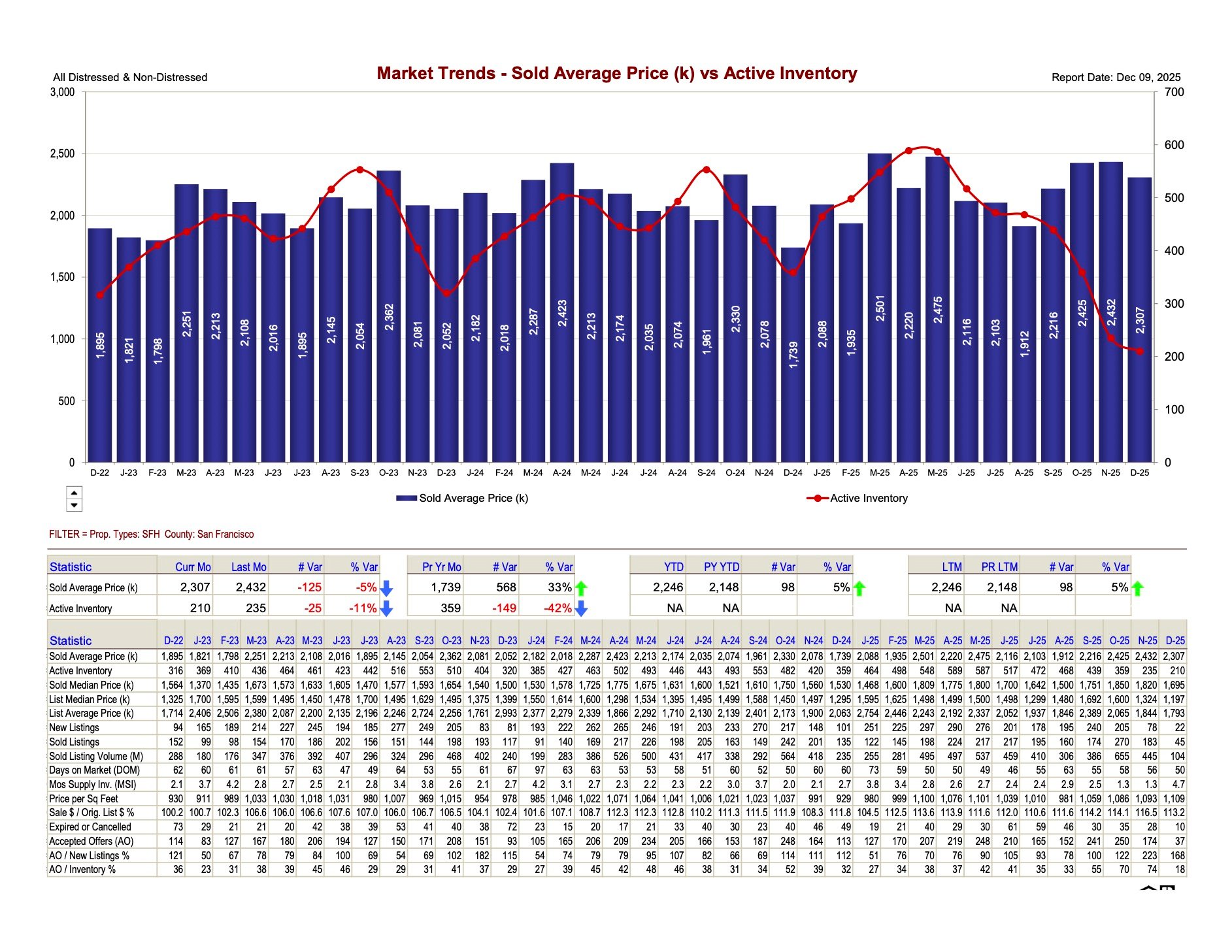 (Source: San Francisco County MLS Market Trends, Dec 9, 2025)