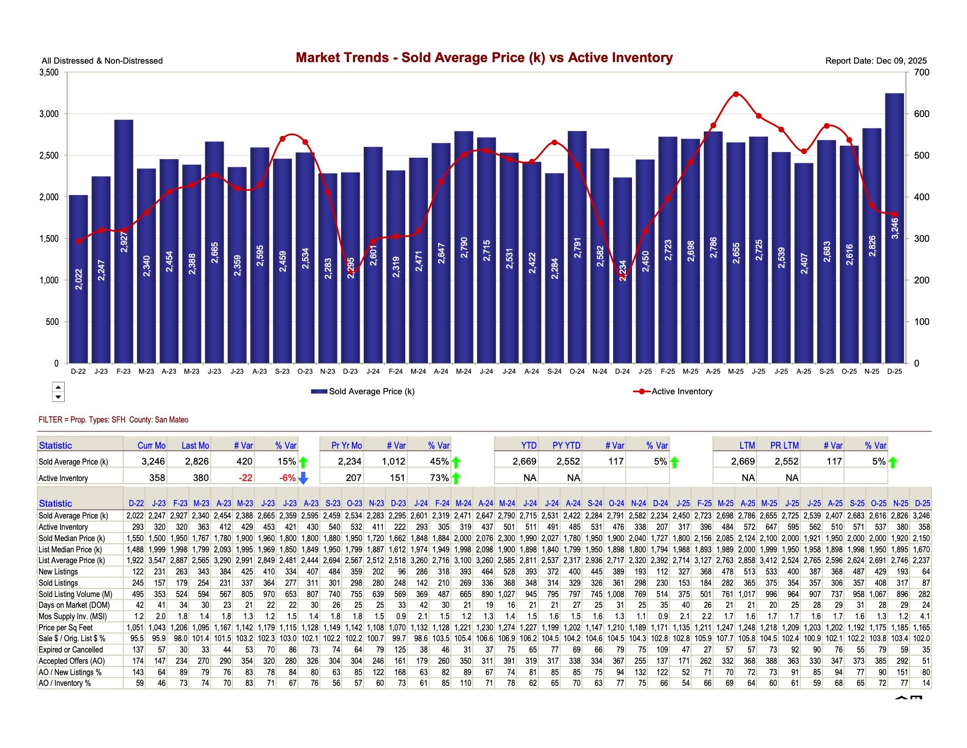 (Source: San Mateo County MLS Market Trends, Dec 9, 2025)
