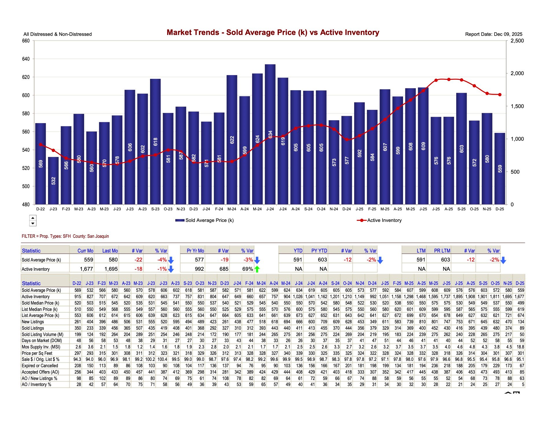 (Source: San Joaquin County MLS Market Trends, Dec 9, 2025)